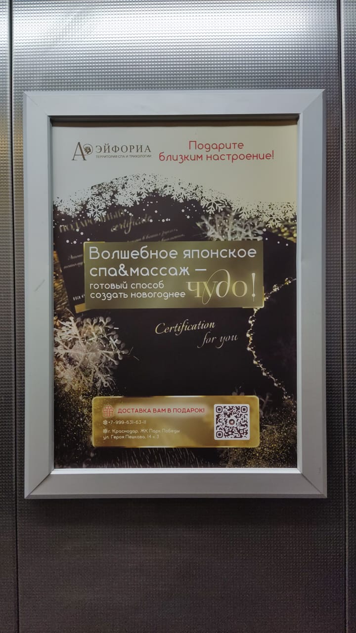 Рамка – это прекрасная возможность распространить имиджевую и информационную рекламу о товарах и услугах в самом посещаемом месте бизнес центра, в лифте